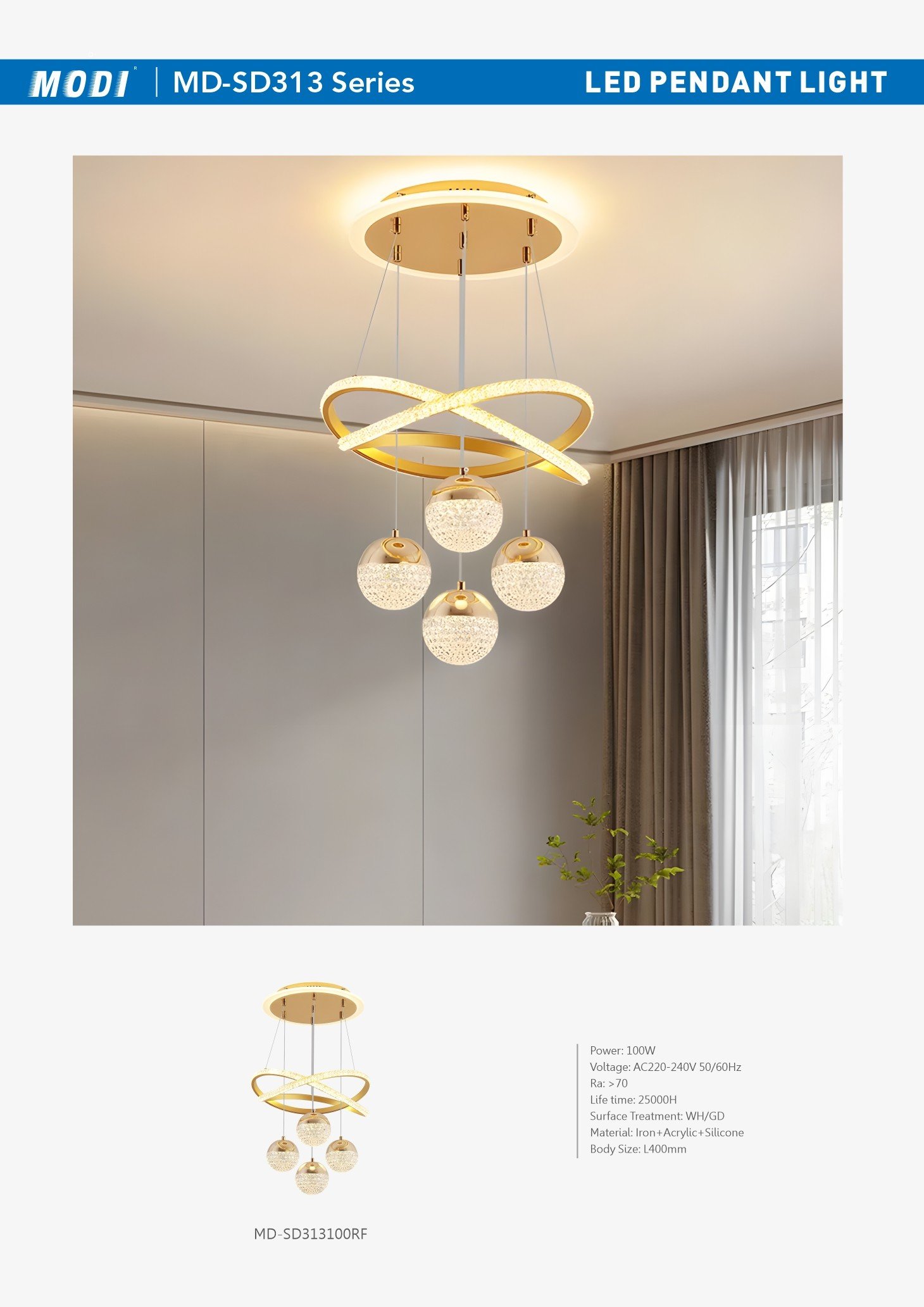 Voltage: AC220-240V 50/60Hz Power: 100W Life time: 25000H CRI: ≥70 Material: Iron+Acrylic+Silicone Body Size: L400mm