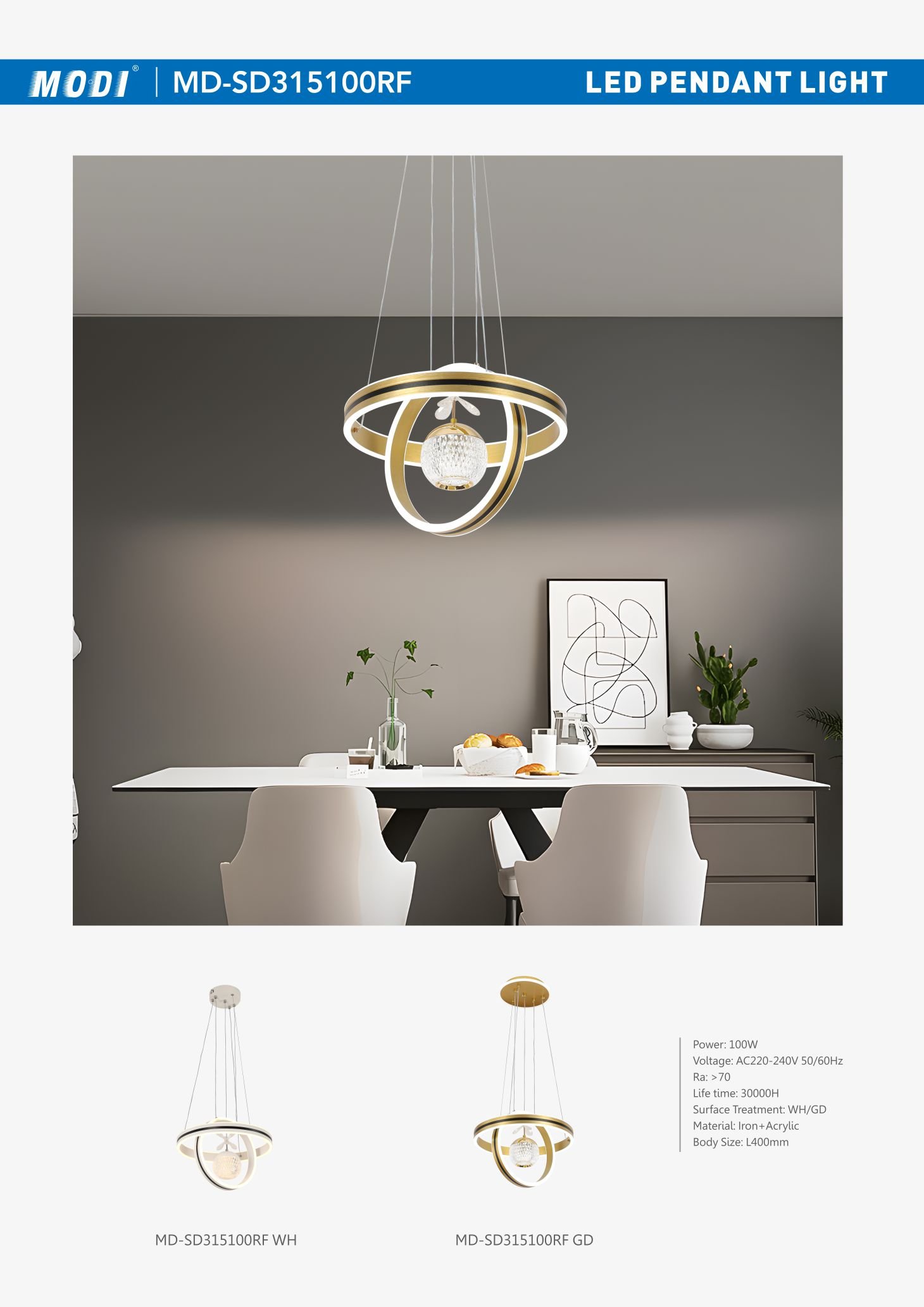 Voltage: AC220-240V 50/60Hz Power: 100W Life time: 30000H CRI: ≥70 Material: Iron+Acrylic Body Size: L400mm