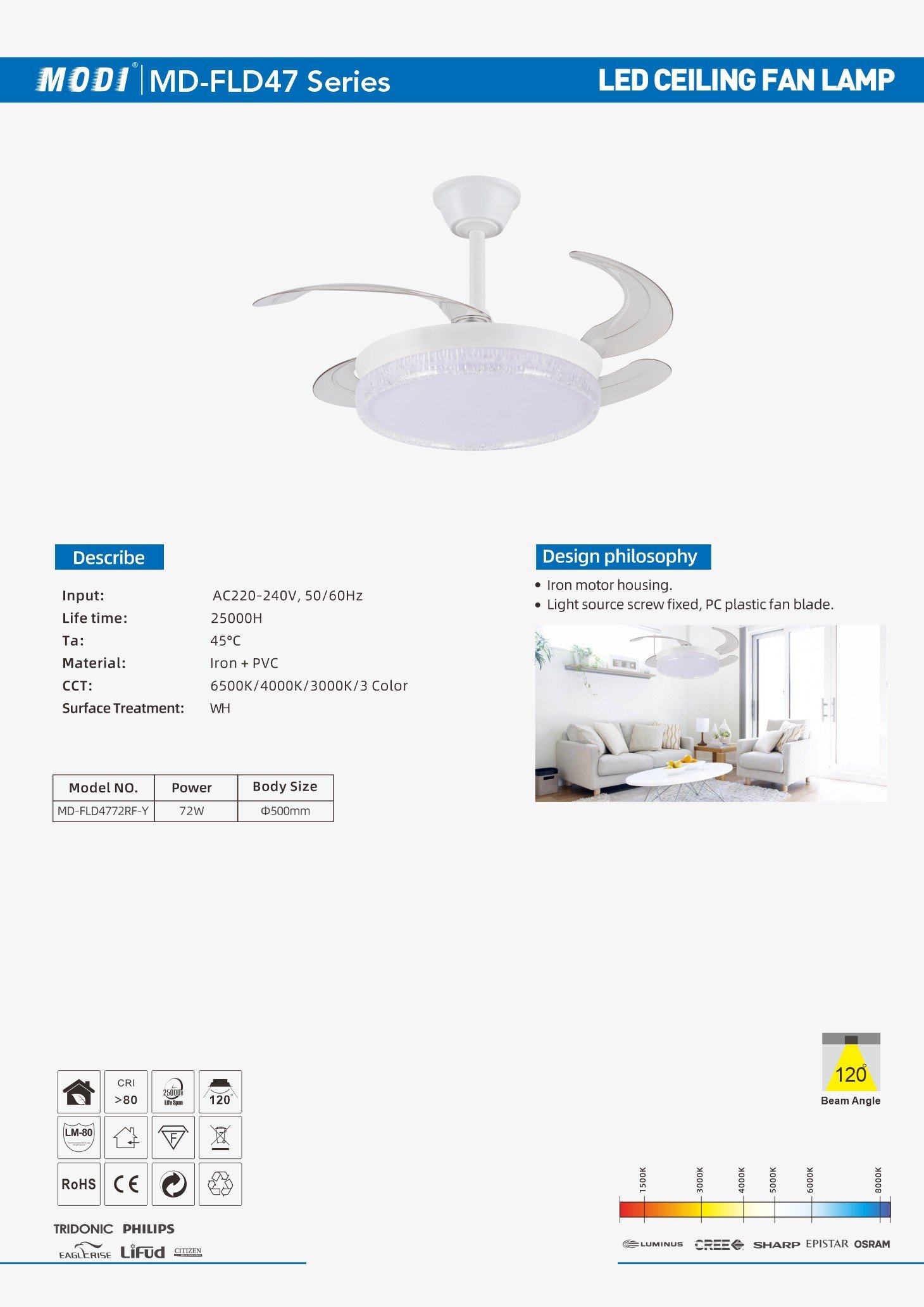 Voltage: AC220-240V 50/60Hz Power: 72W CRI: ≥80 Beam Angle: 120° Body Size: Ф500mm Material: Iron+PVC PF: >0.5 Surge: 2KV