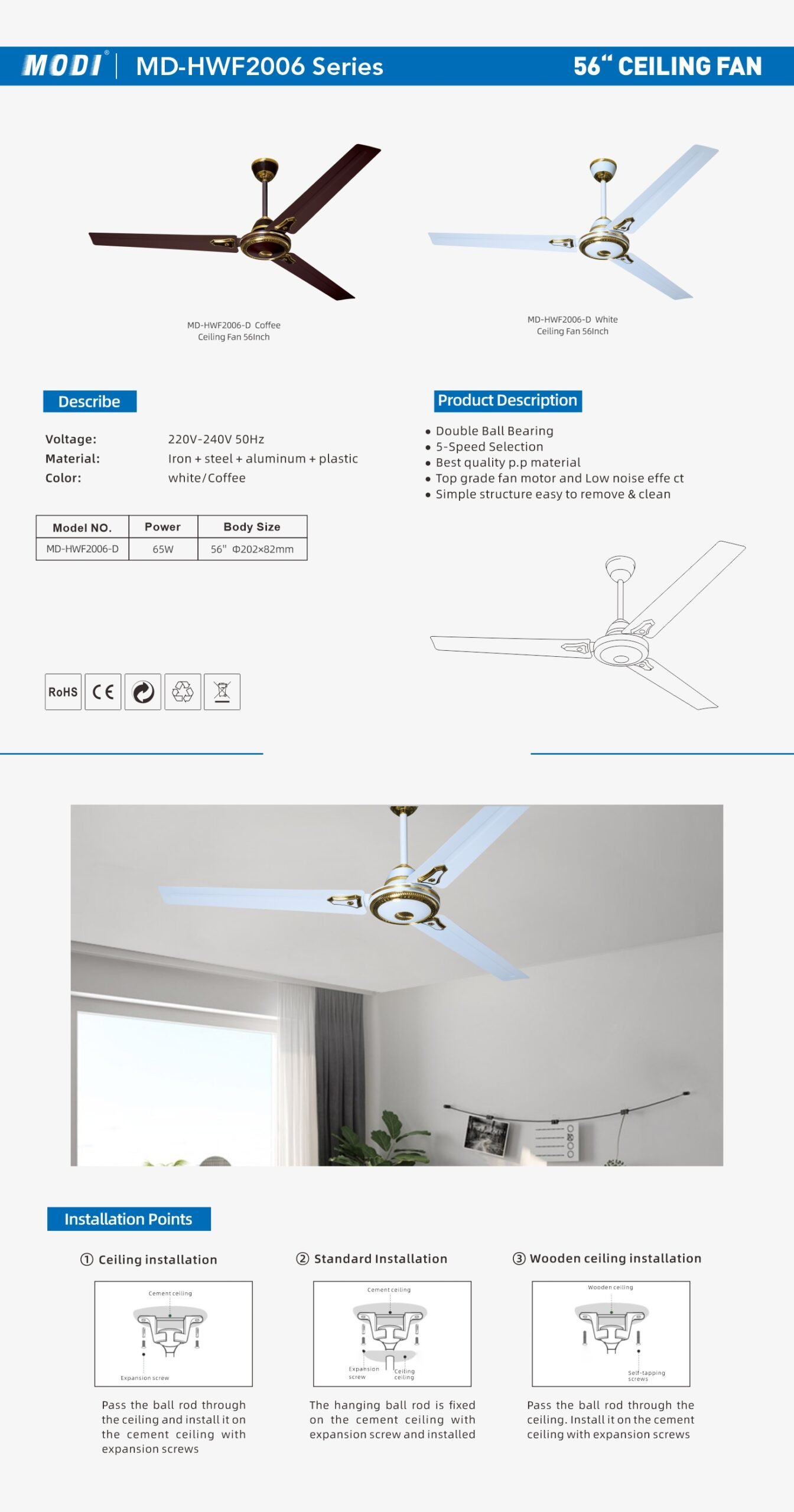 Voltage: AC220-240V 50/60Hz Power65W Color: White Material: 铁 Body Size: 56’Ф202×82mm