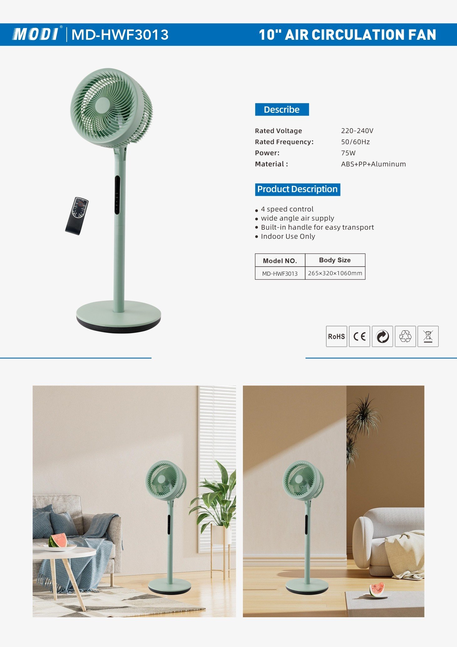 Voltage: AC220-240V 50/60Hz Material: ABS+PP+Aluminum Color: Green Power: 75W Body Size:265x320x1060mm