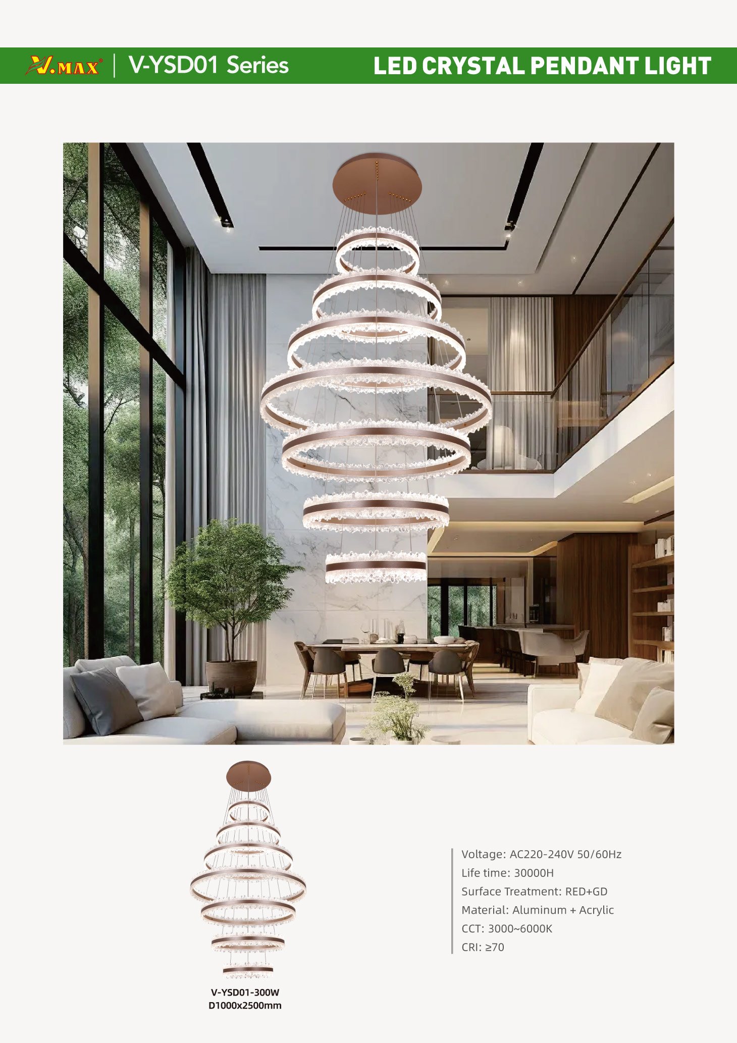 Voltage: AC220-240V 50/60Hz Life Time: 30000H Surface Treatment: RED+GD Material: Aluminum + Acrylic CCT: 3000K~6000K CRI: ≥70 Body size: D1000*2500mm