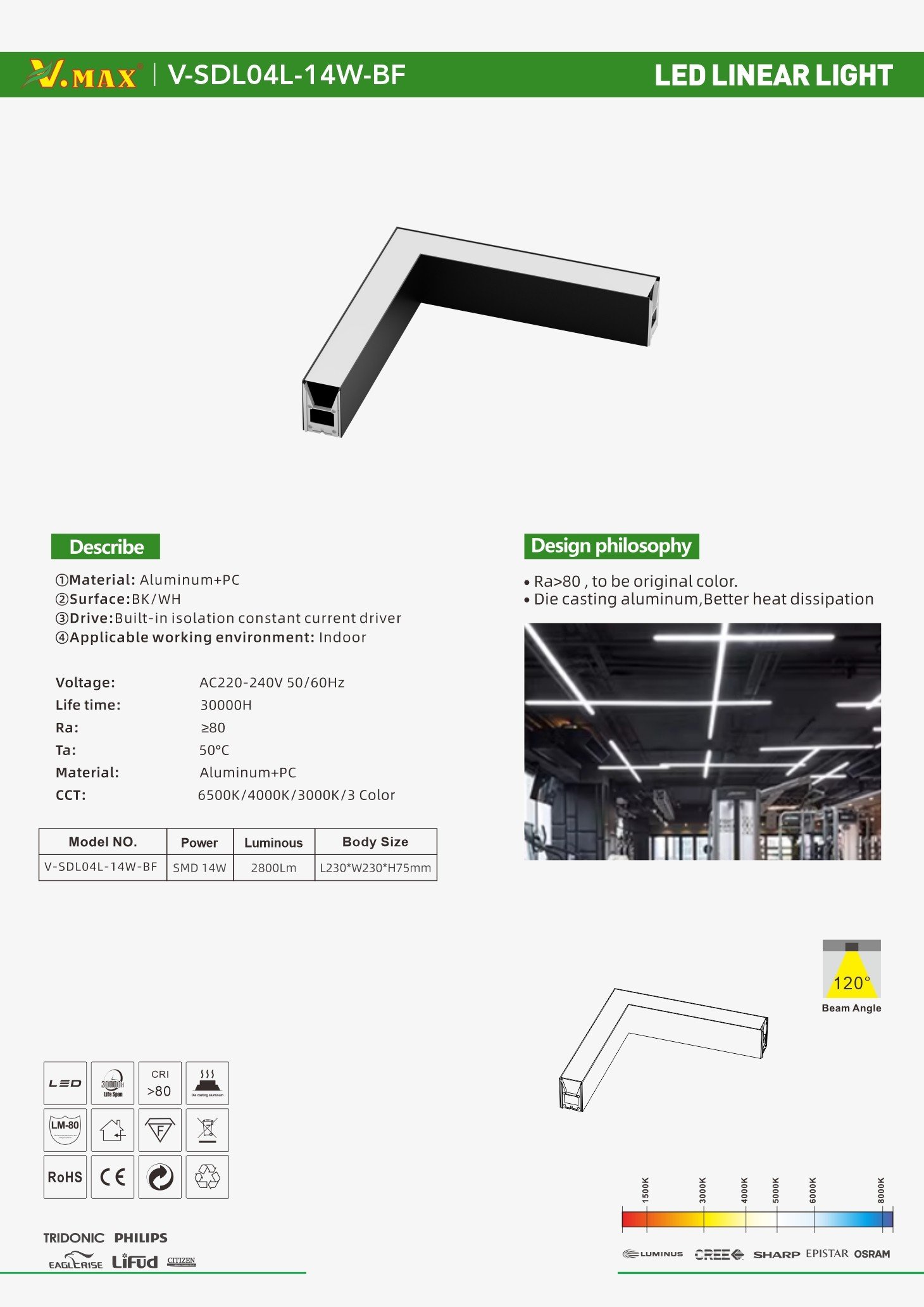 LED Line Light V-SDL04L-14W-BF Series