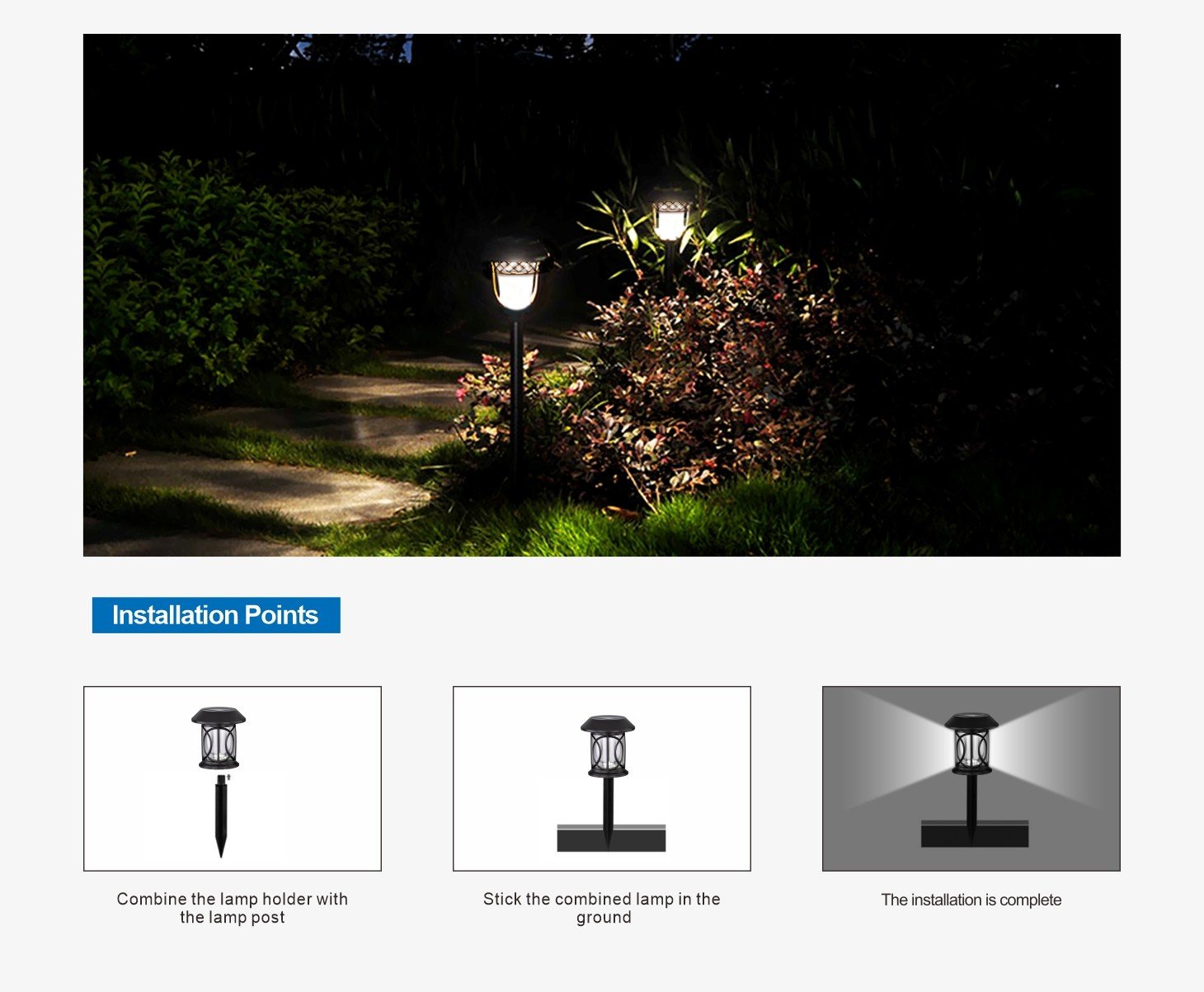 LED Type: 2W LED Solar panel: 0.3W Solar battery charging: >10hours Working time(full charge): >6hours Battery: 1.2V 800mAh Ni-MH battery Body Size:140x505mm Automatic light sensor control
