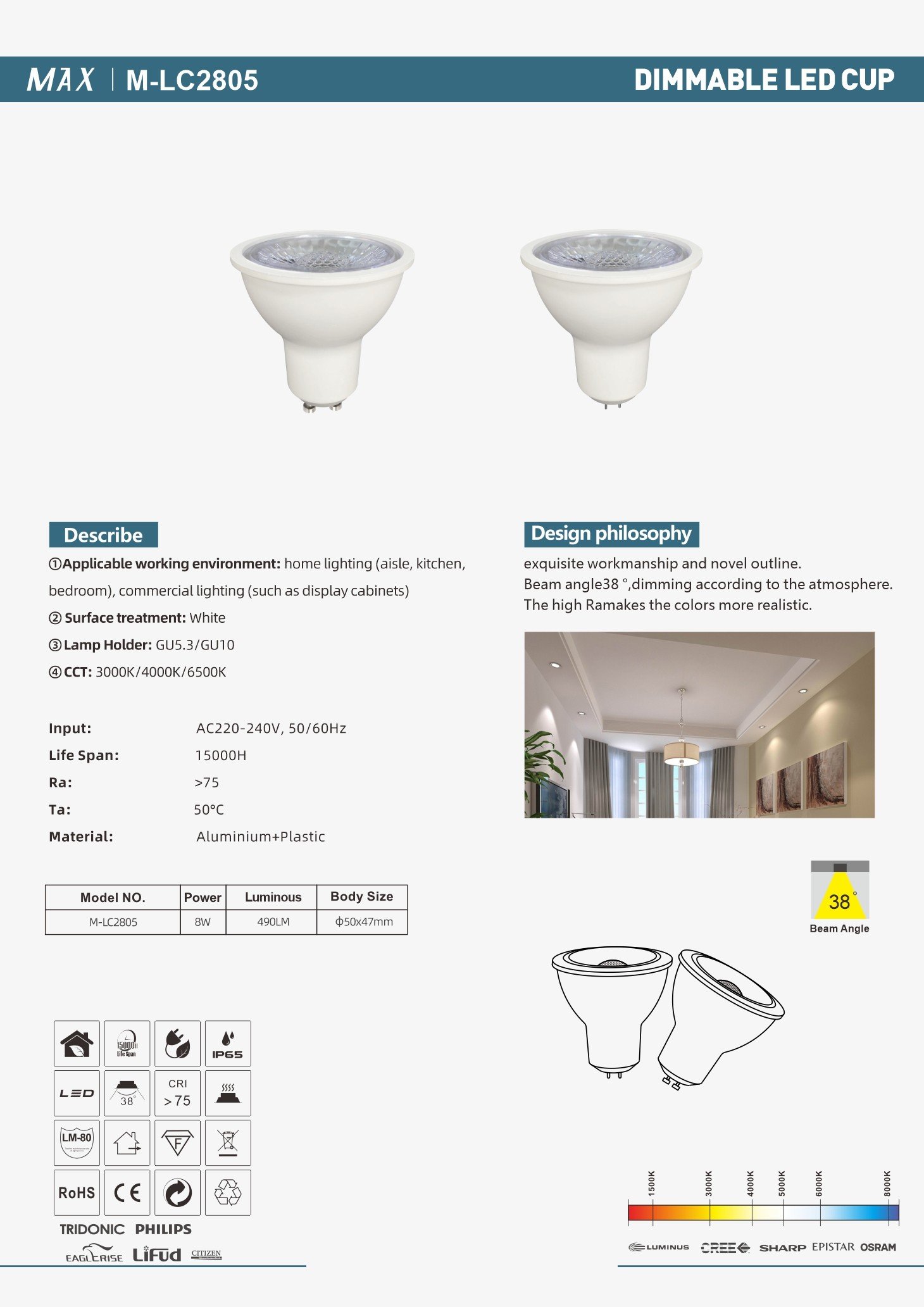 Beam Angle: 38°