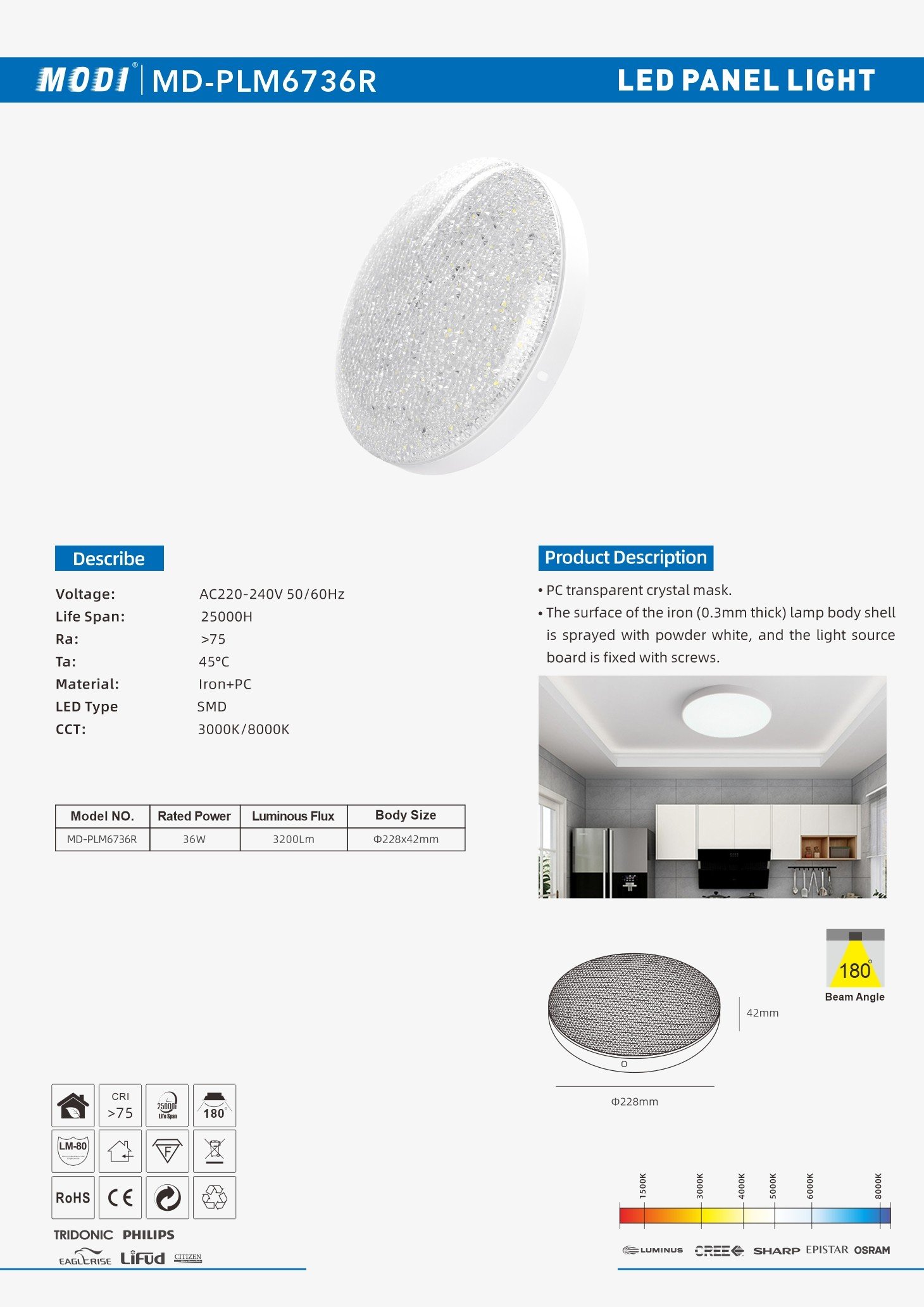 Body Size: Ф228x42mm