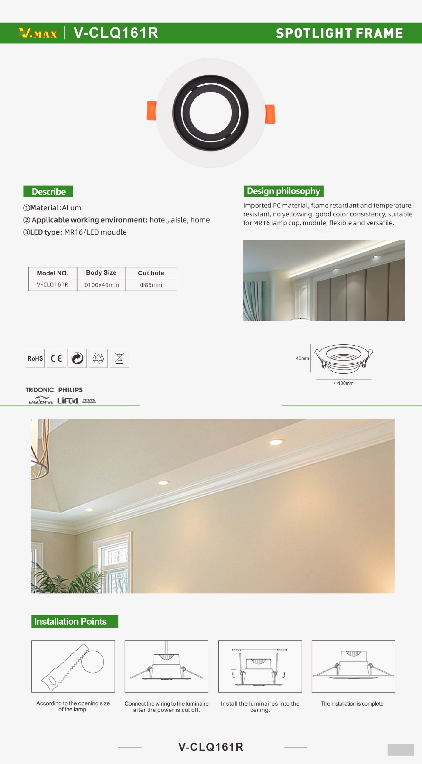 Material:Aluminum LED type : MR16/LED Moudle Body Size:Ф100x40mm Hole Size:Ф85mm