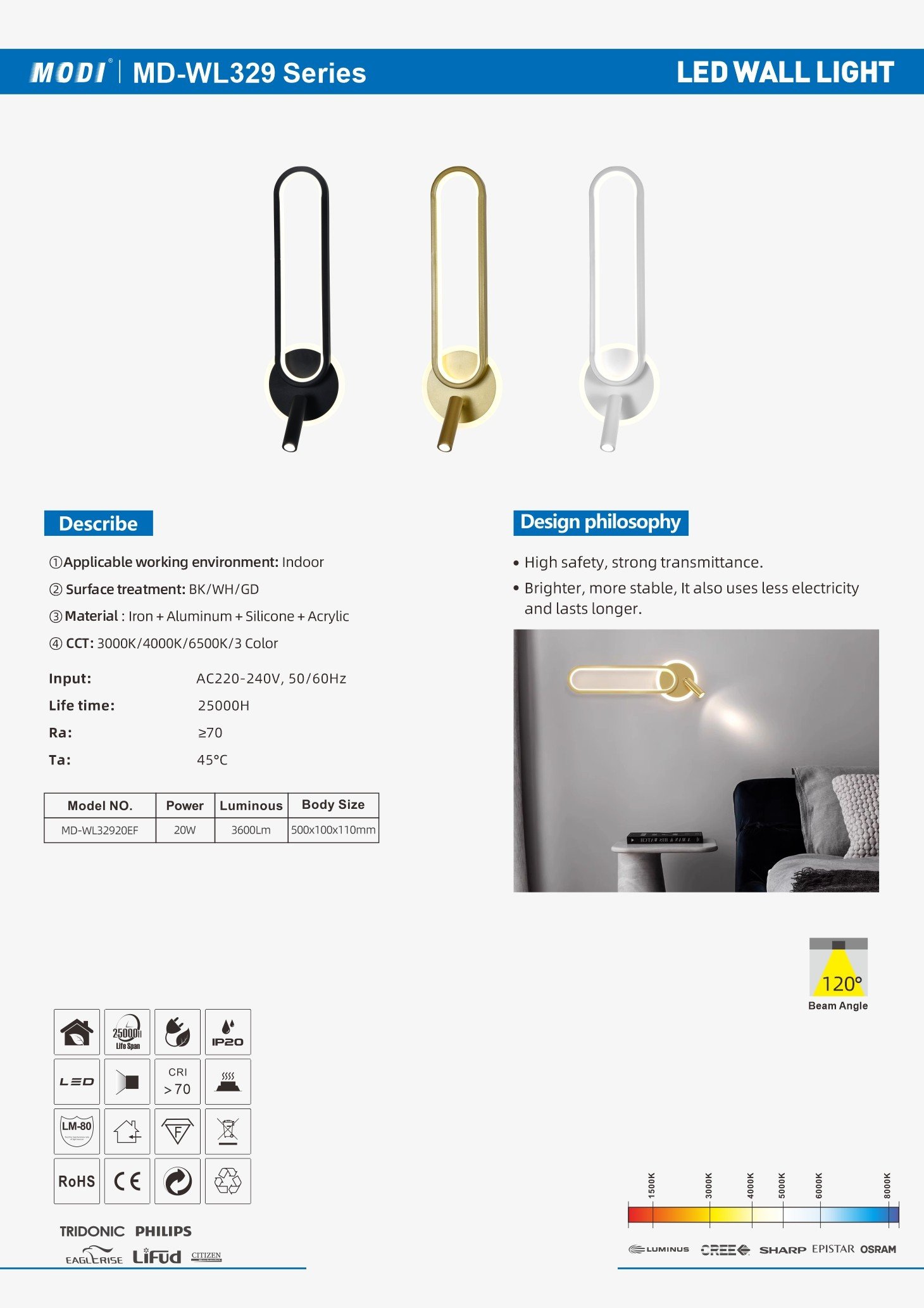 Voltage: AC220-240V 50/60Hz Power: 20W CRI: ≥70 Luminous: 3600Lm Beam Angle: 120° PF: >0.5 Surge: 2KV Material: Iron+Aluminum+Silicone+Acrylic Body Size: 500x100x110mm