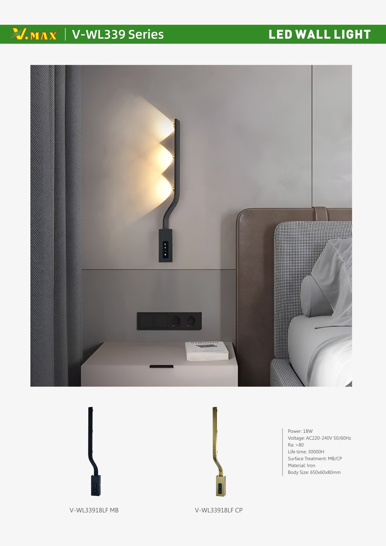 Voltage: AC220-240V 50/60Hz Power: 18W Life time: 30000H CRI: ≥80 Material: Iron Body Size: 650×60×80mm